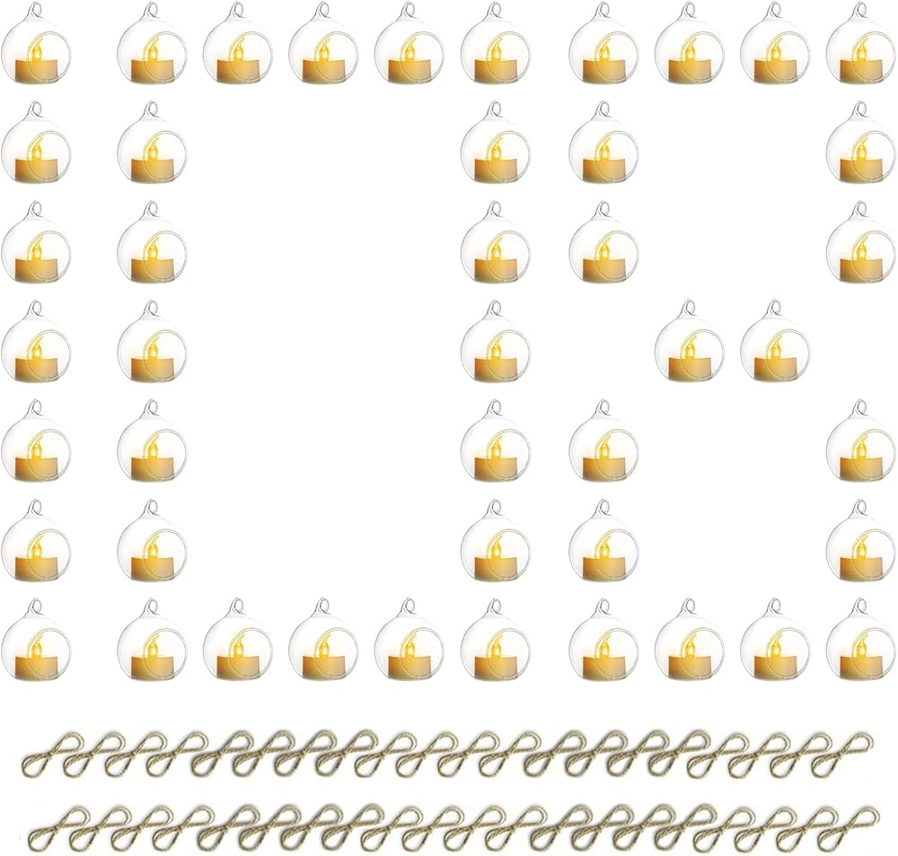 UPDATED PACKAGE: New and improved packaging of the glass hanging balls. Each hanging tealight candle holder are secured in sturdy styrofoam, ensures safe shipping of these stunning hanging candle globes!