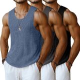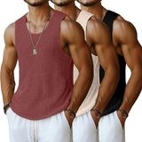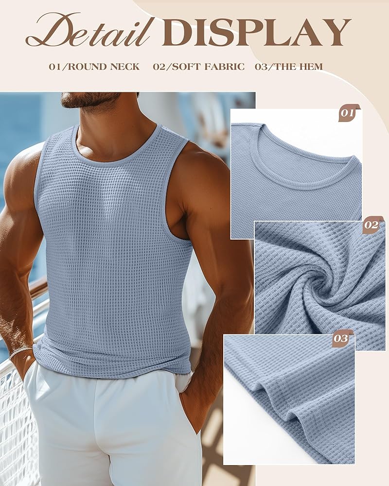 Comfortable Material: the men's casual tank tops are made of 95% Polyester, 5% Spandex; The lightweight waffle fabric is soft, breathable, sweat wicking, gentle on the skin and stretchy, allows for full flexibility during wear; Keeps you cool and relaxed through the day
