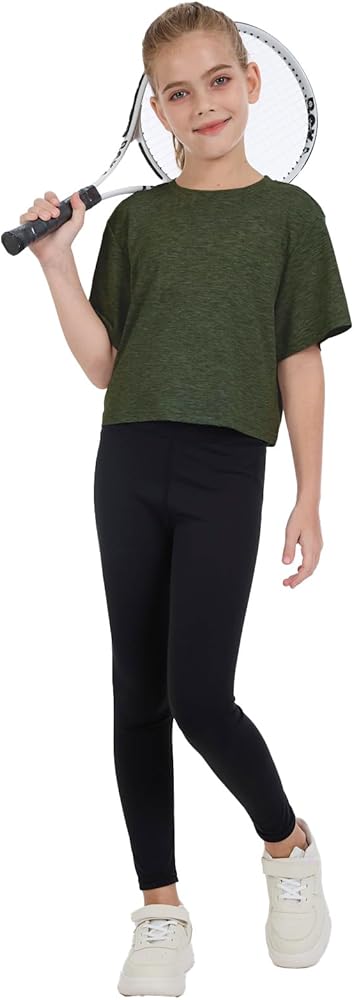 Material: 90%Polyester,10%Spandex. The girls short sleeve shirt is super soft,elastic,durable and lightweight,very suitable for spring,summer,autumn,winter.