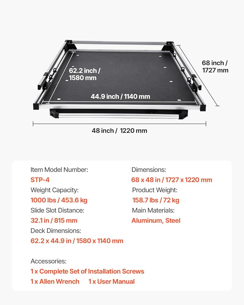 High Compatibility: This 75 x 48 in / 1905 x 1220 mm sliding truck bed tray supports up to 1000 lbs/453.6 kg, easily holding your tanks, cargo, compressors, and other professional tools, along with camping and travel gear, without any deformation.