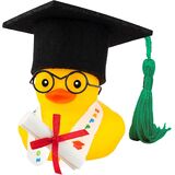 Squeak and Fun: This car rubber duck will squeak when you press it. These car ducks for the dashboard are equipped with a graduation stole, graduation hat, graduation certificate, nearsighted glasses, double-sided tape. They are designed to decorate the interior or exterior of your car.It can be used as a graduation prop.