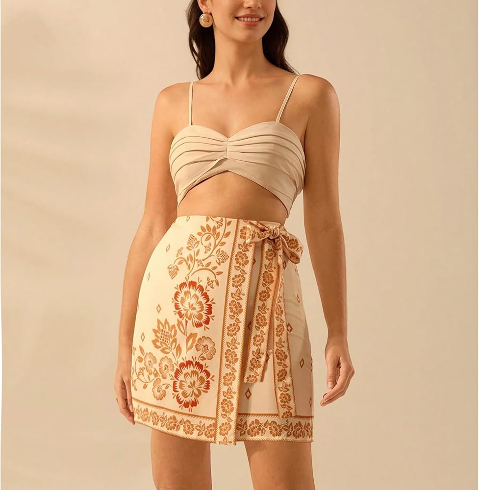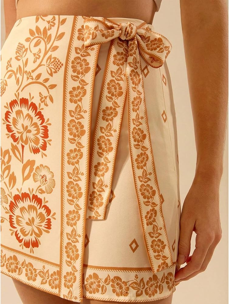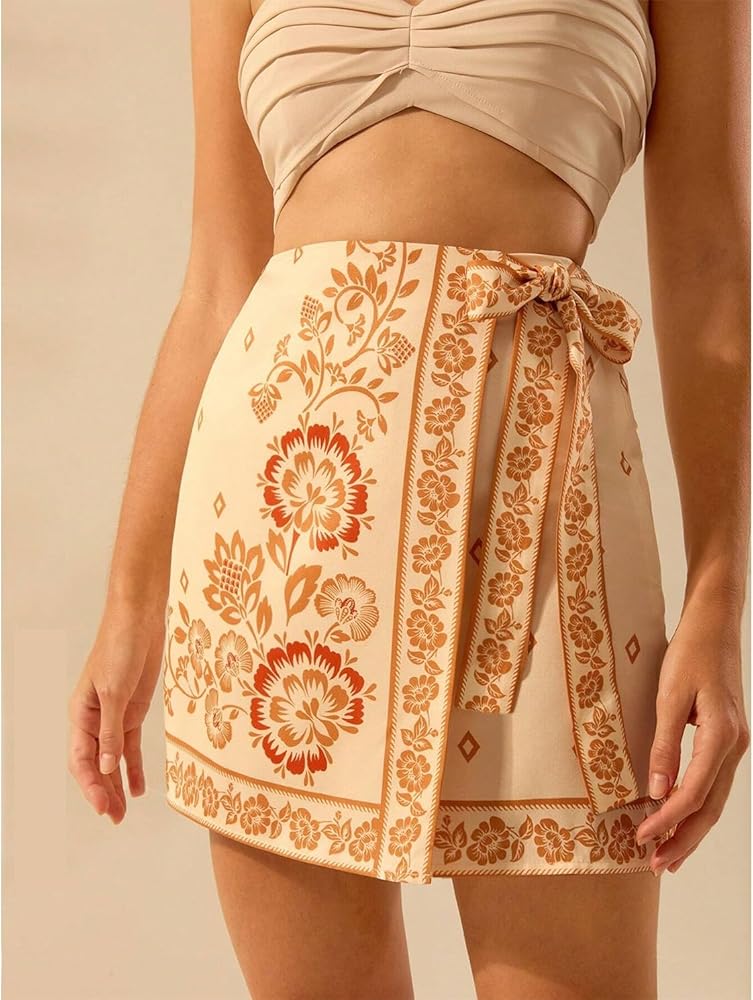 Feature: The women boho floral short skirt features side tie knot, wrap high waist, short, boho floral print. Customize the fit with flattering side ties for a chic, figure-flattering silhouette.