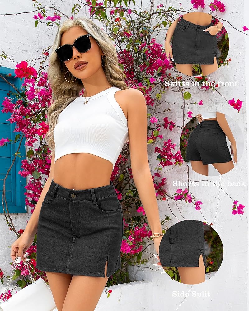 Stylish Design: Vintage denim skorts with stretchy shorts bridge seasons.The high-waisted style creates an edgy look, pair with light layers like button-downs shirts and camis, mid-weight denim for spring-to-summer comfort. Style with boots or sandals.