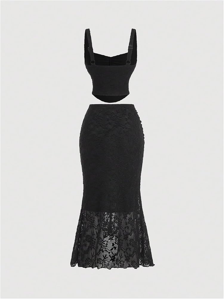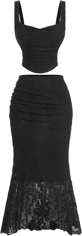 - Lace sheer tank top and long skirts 2 piece sexy bodycon outfits