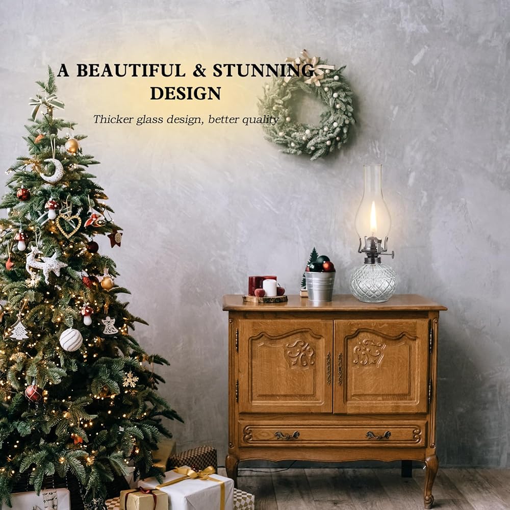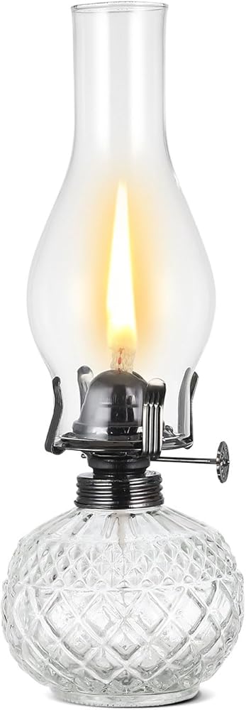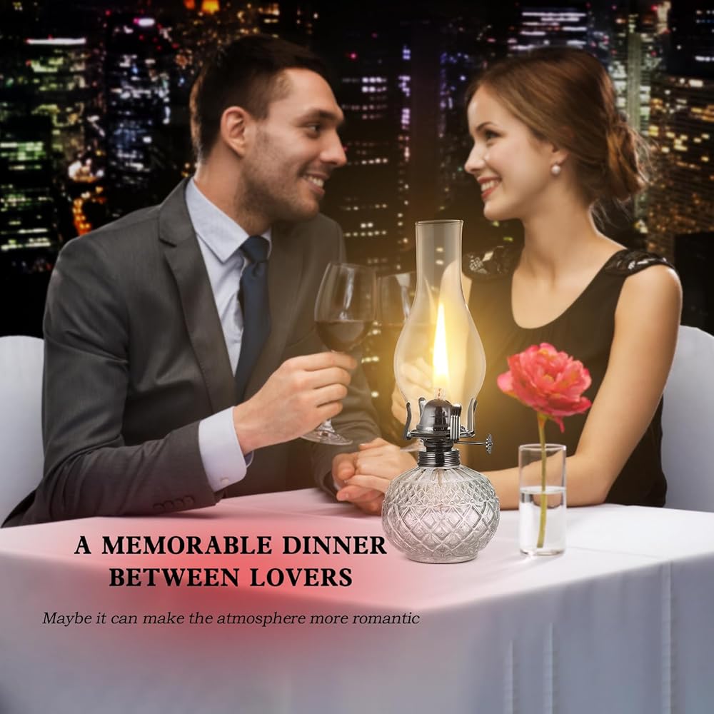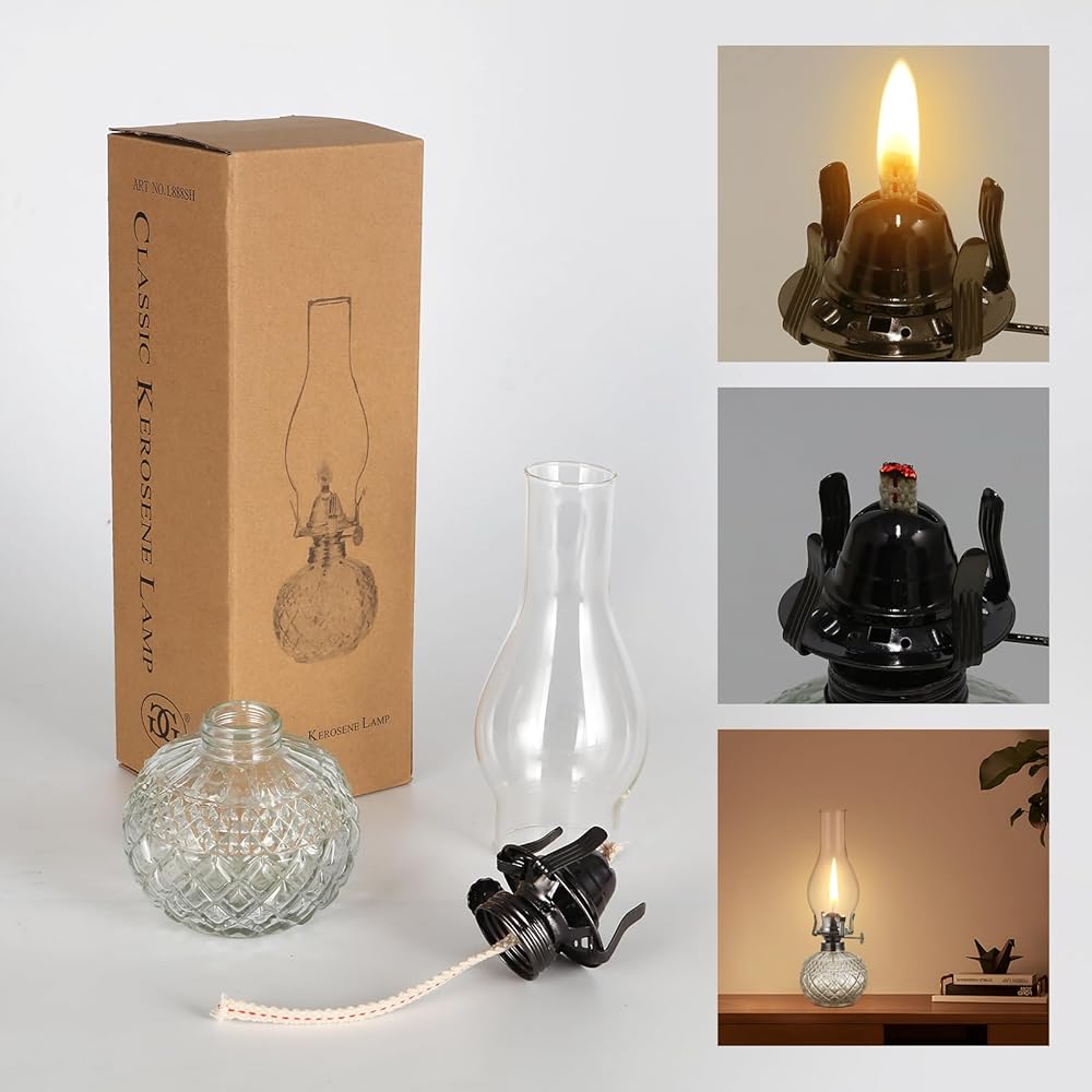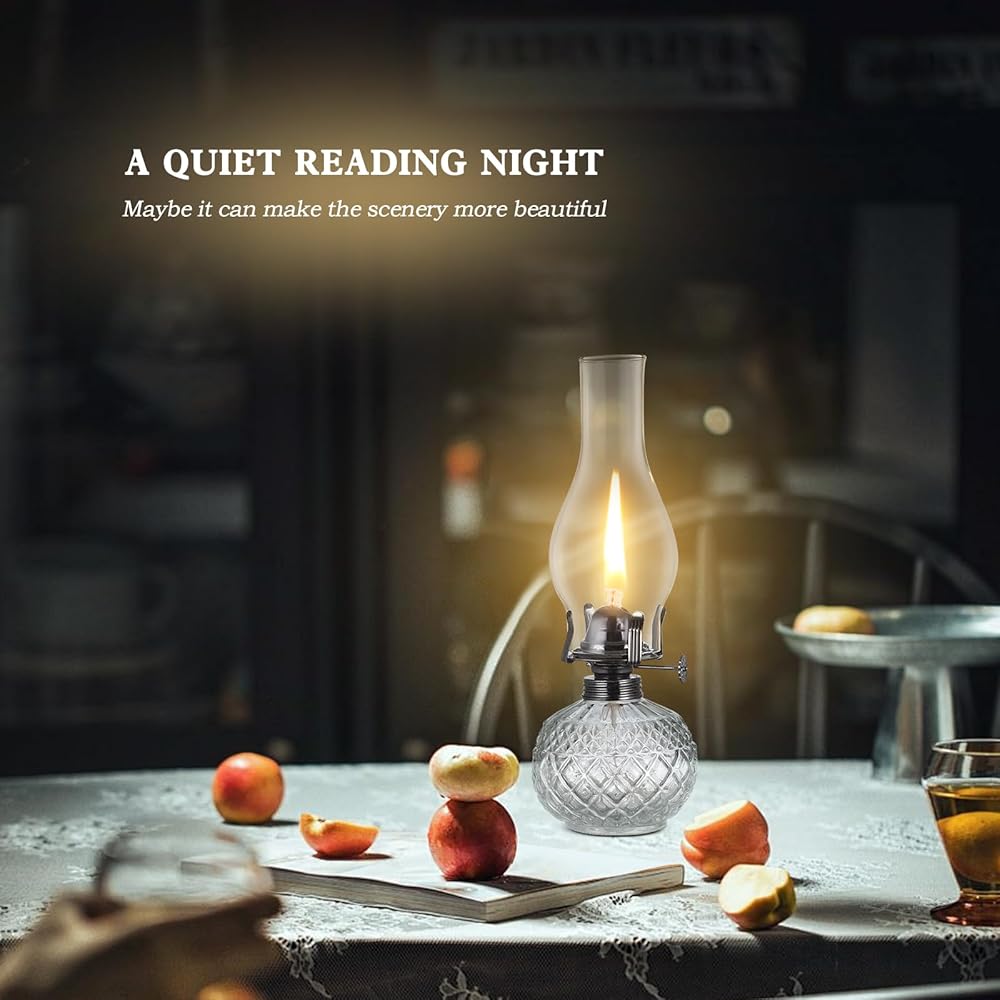 【Safety Materials】Our oil lanterns for indoor use adopt thickened High-Borosilicate glass clear cover, this rustic decor oil lamp good light transmission and easy to clean. Cotton lamp wick, fast absorption, smokeless and tasteless. flame regulator is made of metal, strong enough.