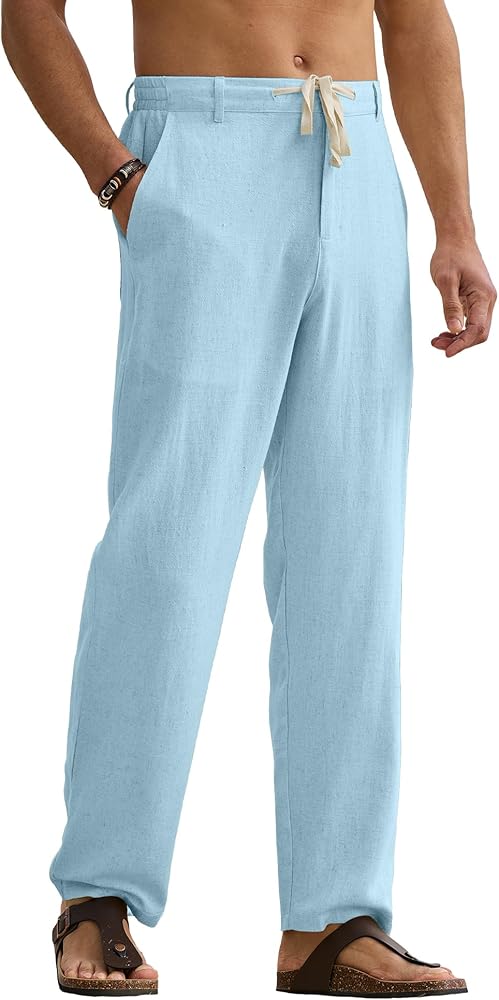 Crafted from premium linen, these lightweight pants are breathable and comfortable enough to wear all seasons even on the warmest days and have a better wrinkle resistance.