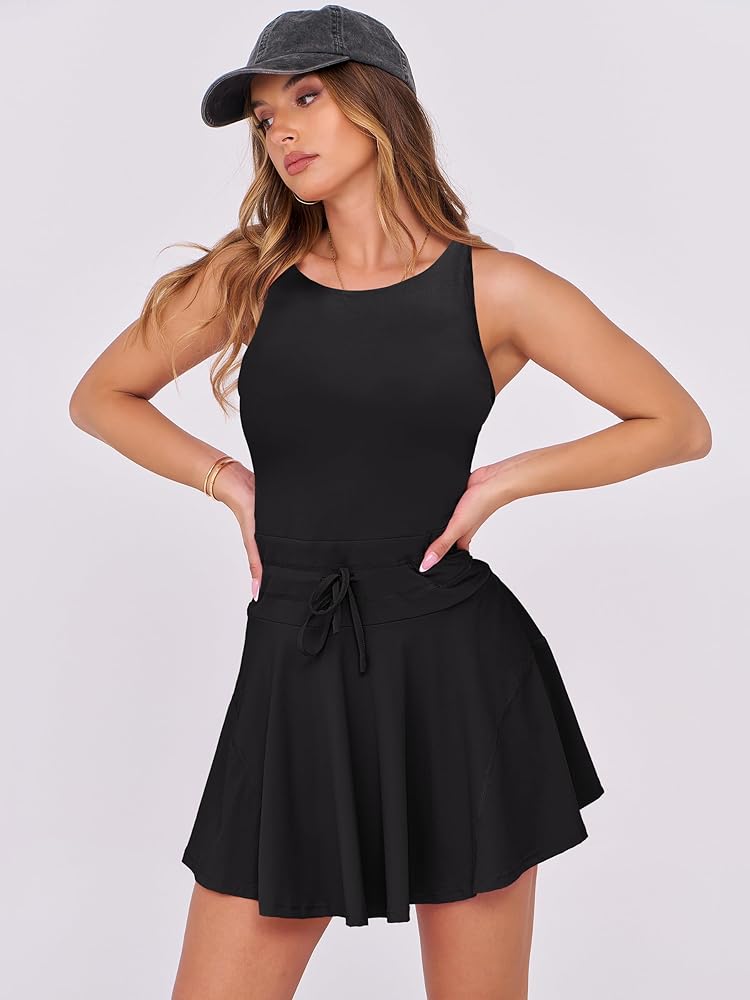【Features】 - Built in shorts, pockets, sleeveless, adjustable waist tie.