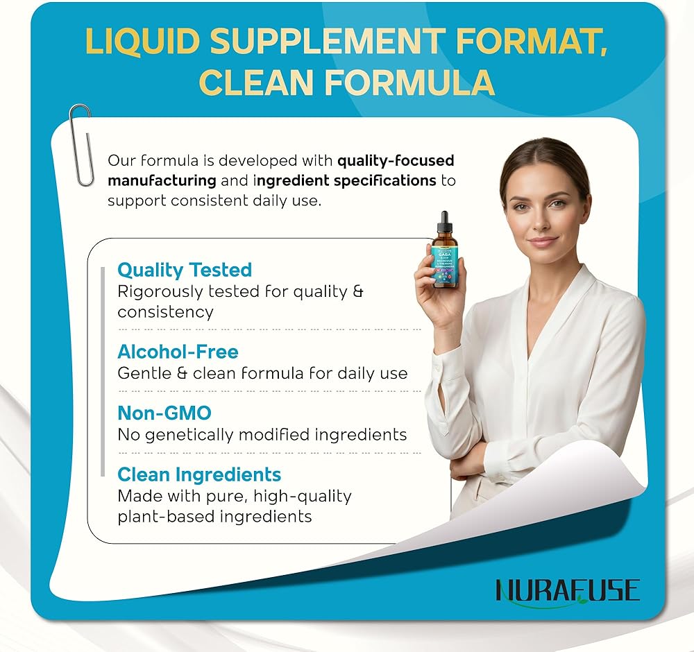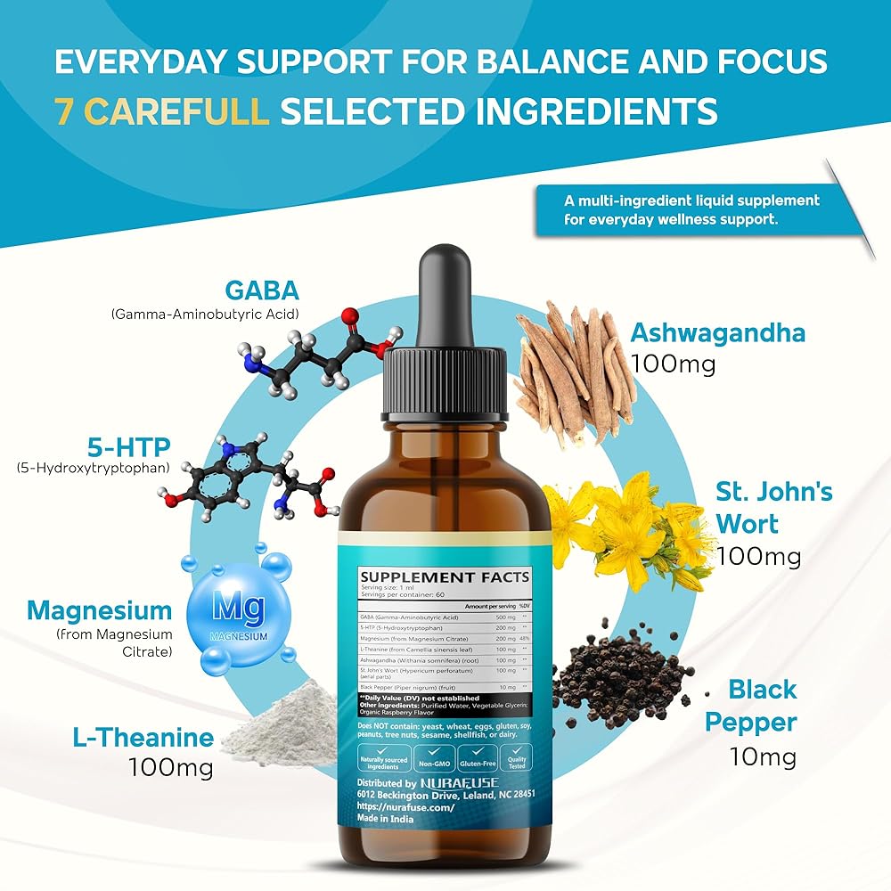 • High-Potency Liposomal Gaba Formula: Packed with a powerful 1210 mg per serving, NuraFuse liquid blend helps calm the mind, balanced mood throughout the day. Perfect for those looking to feel more relaxed, focused, and emotionally balanced throughout the day.