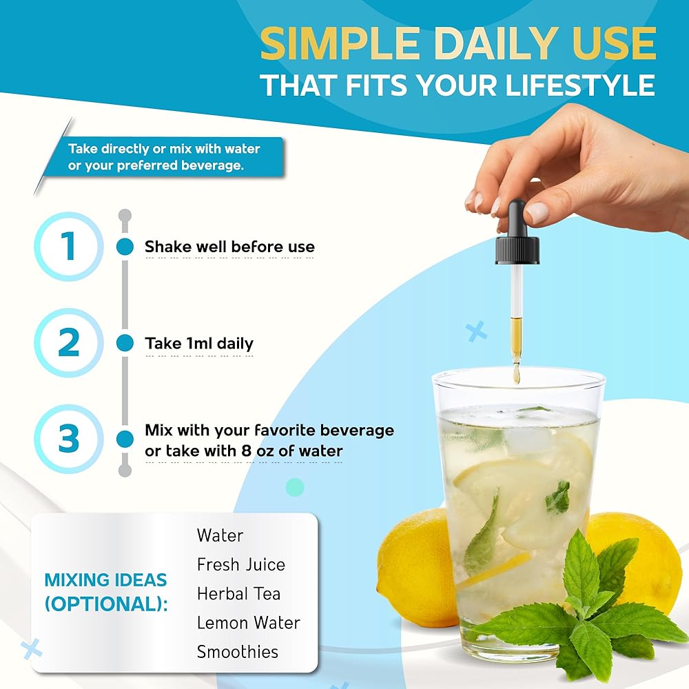 • Convenient, Delicious, and Clean: With a refreshing raspberry taste, this liquid formula is perfect for those who struggle with pills. Simply take it straight or mix it into your favorite drink, made in the USA with clean, organic ingredients, without artificial flavors, fillers, or preservatives.