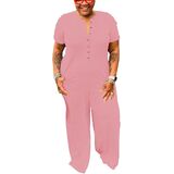 FEATURES: Plus Size Womens Short Sleeve One Piece Jumpsuits, Button Up, Sexy, Comfy, One Piece Dressy Rompers, Loose Fit Design Will Make You Fresh and Energy.