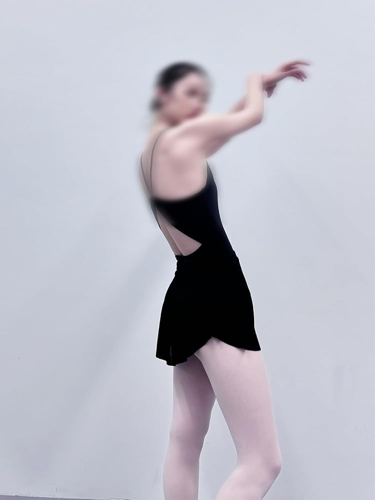 - The side seams are shorter than the front and back, providing coverage without restricting dance moves.