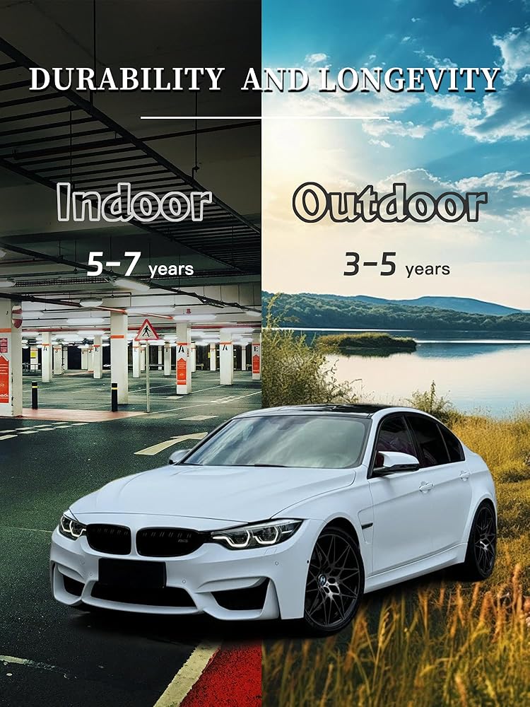 DURABILITY: Vinyl car wraps offer good longevity and durability,outdoor 3-5 years, indoor 5-7 years. You can use them more years to protect your car.
