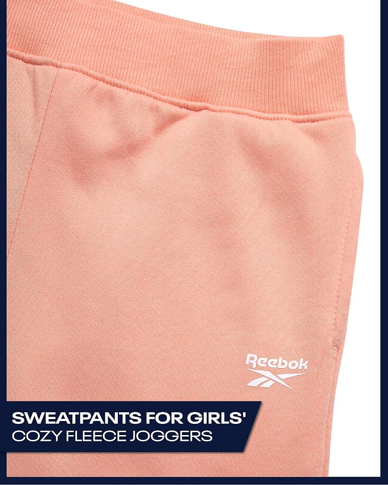 GIRLS' ACTIVEWEAR ESSENTIAL: Elevate your little one's activewear collection with Reebok Girls' Jogger Sweatpants, featuring a versatile poly spun fleece joggers sweatpants; Perfect for summer adventures or casual lounging, these joggers offer comfort and style in one package; Ideal for active girls who love to move and groove