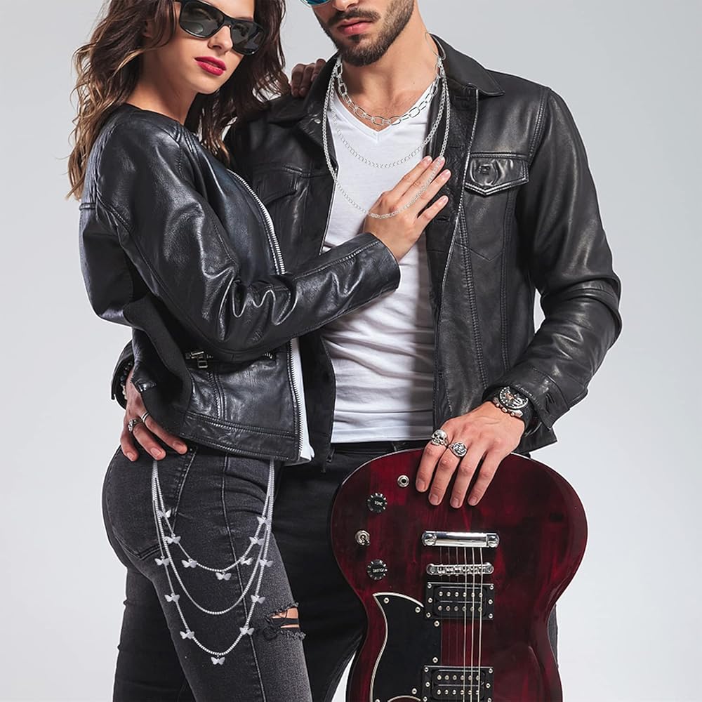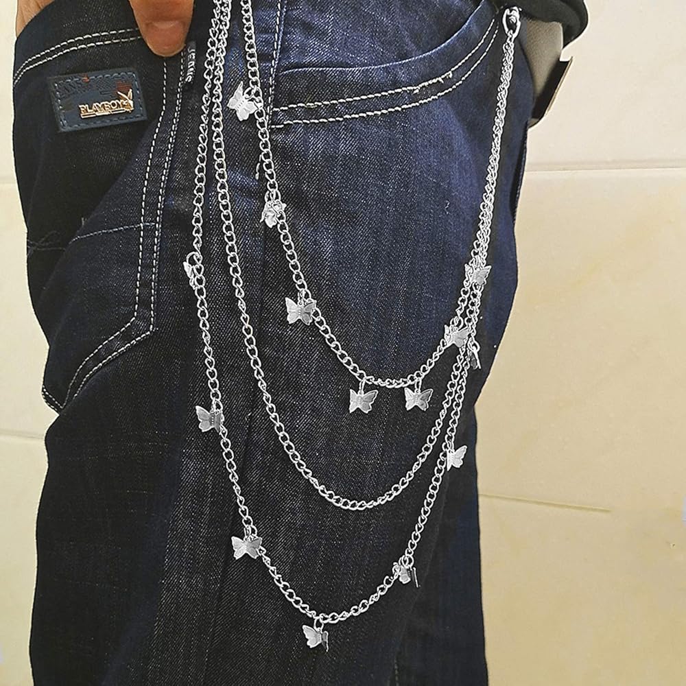【Pants Chain】6 styles combination: you will receive 6 pieces jeans chains of 6 different styles, including single layer chain, double layer chain, triple layer chain, butterfly pendant chain, multi layer lock pendant chain, enough quantity and rich styles to meet your different collocation and replacement needs, and you can also share them with your family and friends.
