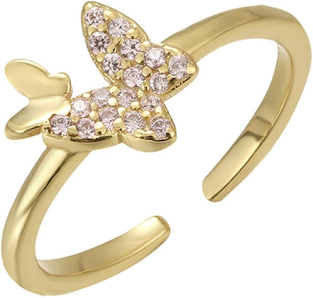 Butterfly Toe Ring,925 Sterling Silver Dainty Butterfly CZ Tor Ring for Women 14K Gold Plated Cute Butterflies Animal Barefoot Thumb Knuckle Ring Beach Party Wedding Hallowmas Jewelry Gift for Her