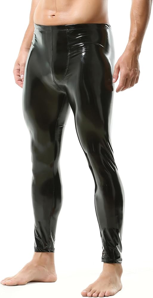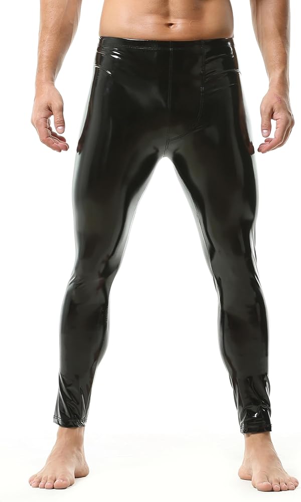 DTODWW Men's Faux Leather Pants Active Leggings Mens Tight Pants PU Long Trousers Skinny for Rock Yoga Dance