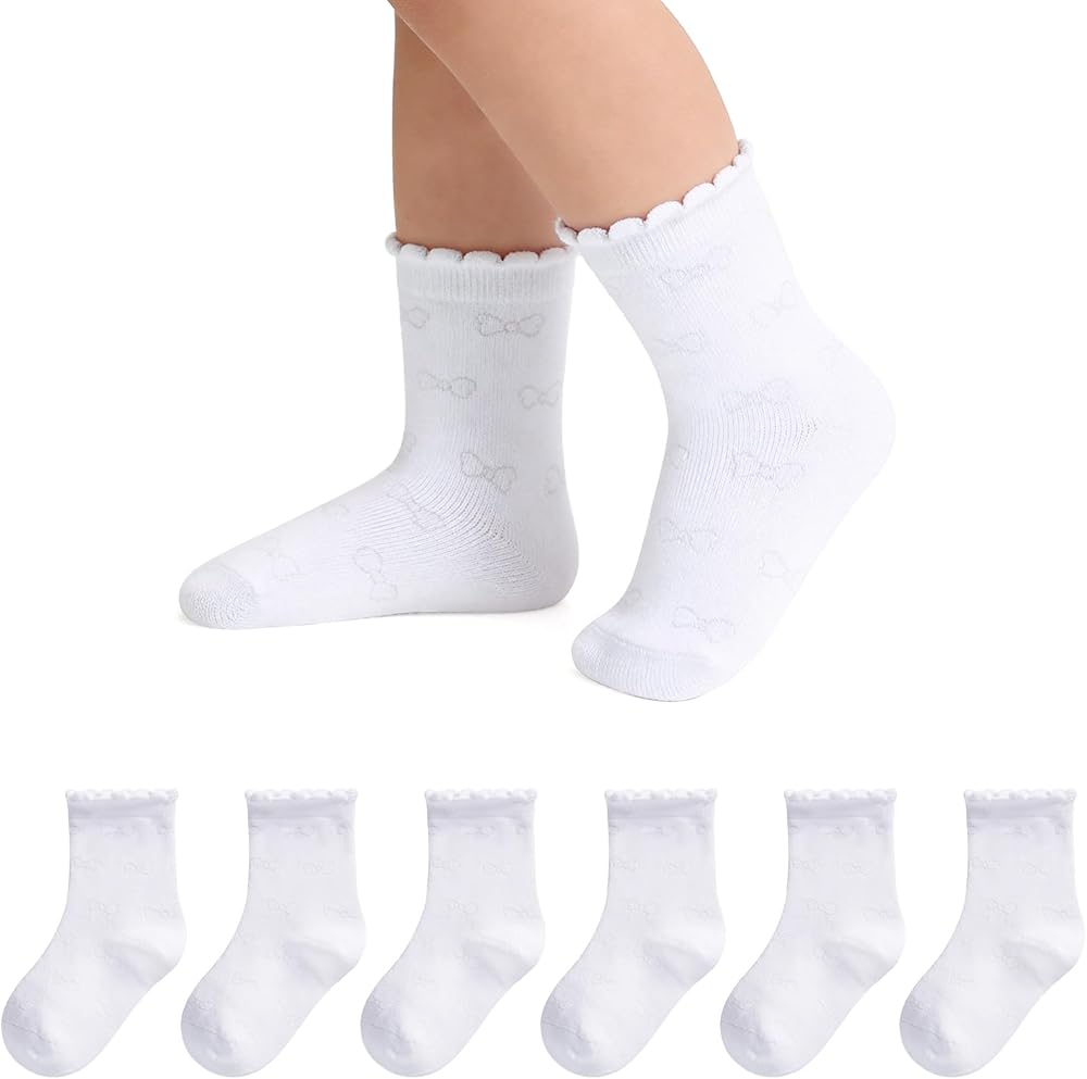 Durable Socks for Girls: 6 Pairs of ruffle socks for girls with reinforced heel and toe parts, they are sturdy and long-lasting, that hold up well to multiple washes and wear.