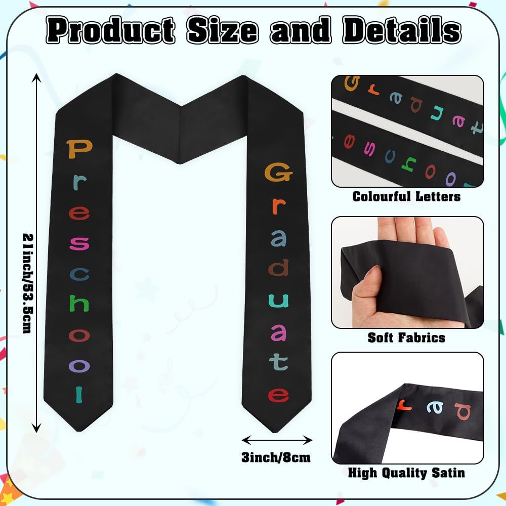 Widely Used: This graduation stole is suitable for all kinds of occasions, such as preschool graduation ceremony, preschool graduation party, kindergarten graduation photo, graduation sash can leave a beautiful memory of your child's preschool kindergarten graduation, it is a beautiful decoration for kindergarten graduation cap, kindergarten graduation gown and preschool graduation certificate