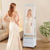 Double Mirror,There is a touch mirror inside the cabinet, and a full-length mirror outside. After completing your perfect makeup in the small mirror, you can admire your beautiful dress in the large mirror.The jewelry storage cabinet can be locked with a key,so your kids can't access your jewelry and ensure jewelry, cosmetics and cosmetics are not lost.