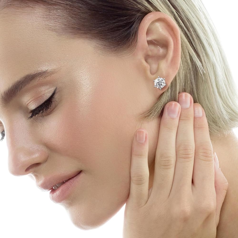 💝UNPARALLELED SPARKLE AND BEAUTY💝Moissanite earrings symbolize the charm and grandeur of moissanite. Each moissanite, carefully selected for its exceptional clarity and sparkle, captivates with its enchanting brilliance. Held securely in an elegant 6-prong setting, these earrings radiate timeless beaut and unmatched elegance. Wearing them is like adorning oneself with allure and grace. As they catch the light, these moissanite earrings serve as a testament to the enduring power and beauty of moissanite.