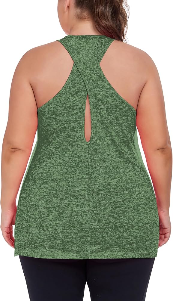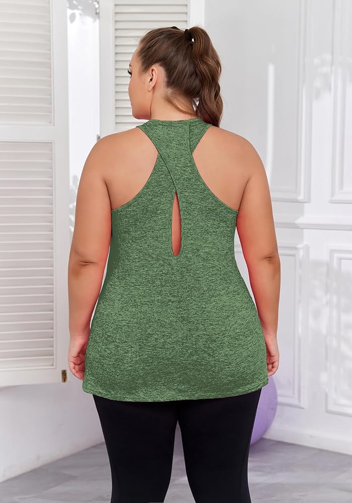【Cross Open back plus size racerback tank tops】This twisted back tank top makes for a distraction free workout! Designed with a longer length and made of stretch jersey fabric, our top drapes to your body for a flattering fit.