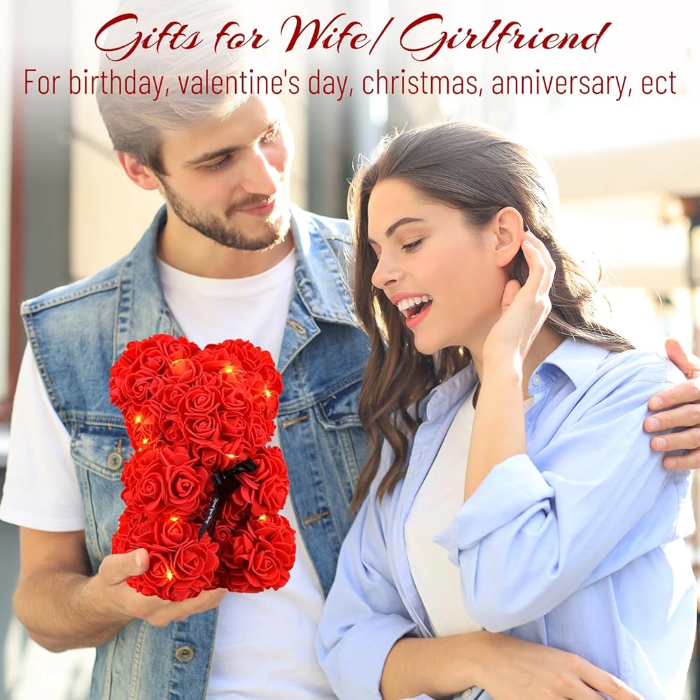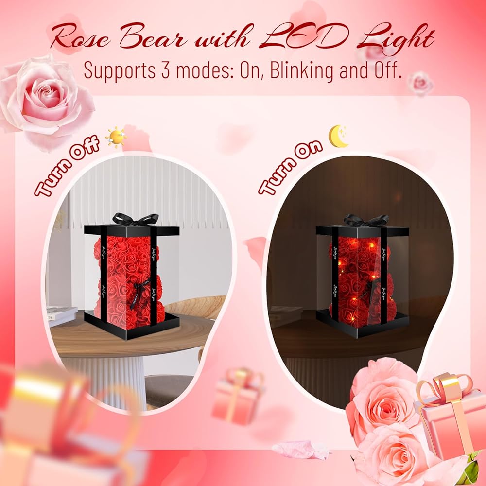 [Exquisite Creative Gifts] This 9 inches cute rose bear with led lights and greeting card (self-fillable text) comes in an beautiful gift box, it's a great mother's day, christmas, valentine's day, anniversary, graduation, teacher appreciation, birthday gifts for women