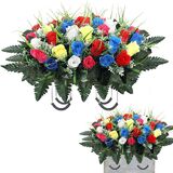 Headstone Flower Saddle:Artificial graveyard flowers with 36 roses and lots of green leaves,Like real flowers, brightly colored,show someone is still loved with cemetery flowers.