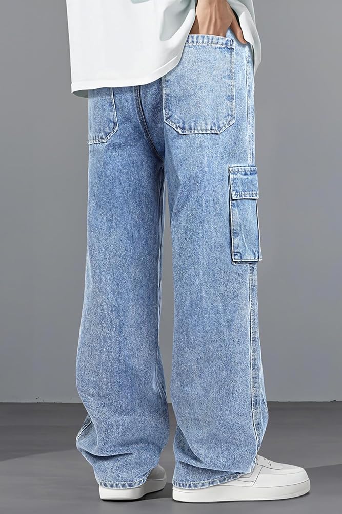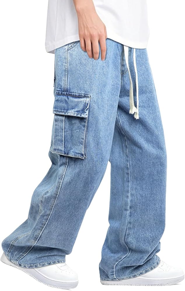 Elastic Waist Design: The mens elastic waist wide leg jeans feature a convenient drawstring closure that provides a comfortable and adjustable fit. Experience the perfect balance of style and flexibility with these innovative jeans.