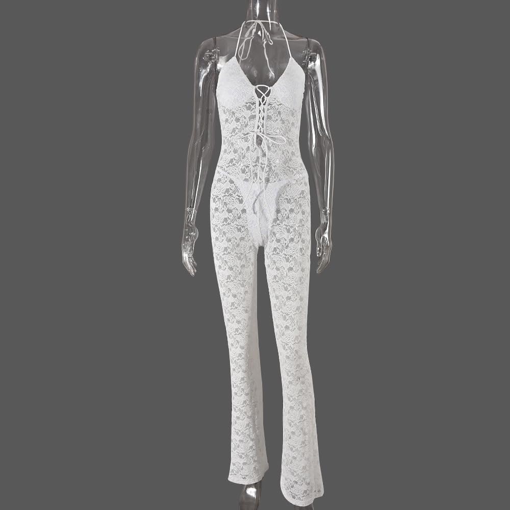 Feature: Lace Jumpsuits, Sleeveless, V Neck, Backless, See Through, Flare, Solid Color, rompers&jumpsuit. womens jumpers and rompers sexy/ sleeveless jumpsuits for women / Sexy One Piece Outfits for Women / sexy club party outfits.