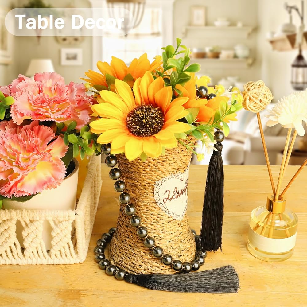 Handcrafted with Premium Materials: Made with high-quality glass pearl beads and durable tassels, this garland is both stylish and long-lasting. Drape prayer beads around planters, candlesticks, mason jars, hang on the wall, place on a doorknob, or place on a tray for a farmhouse chic look anywhere you like