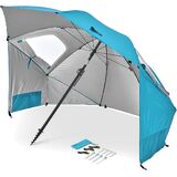 8-foot umbrella canopy features UPF 50 plus sun and weather protection for the beach, camping, sporting events, concerts and festivals