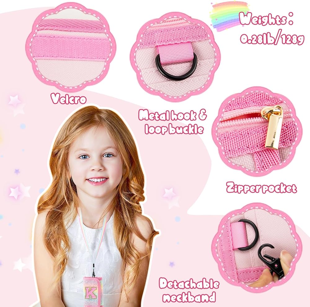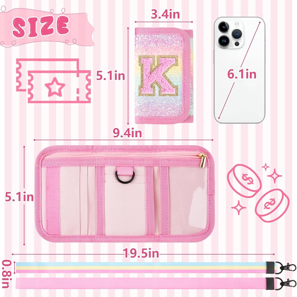 【Perfect Size & 2 strap】This Girls Wallet folds up to 3.42"(L) x 5.12"(W) x 0.6"(H), unfolds to 9.45"(L) x 5.12"(W) x 0.16"(H), comes with 2 different colors of detachable 19.7in neck straps, weighs 0.28lb, compact and lightweight.