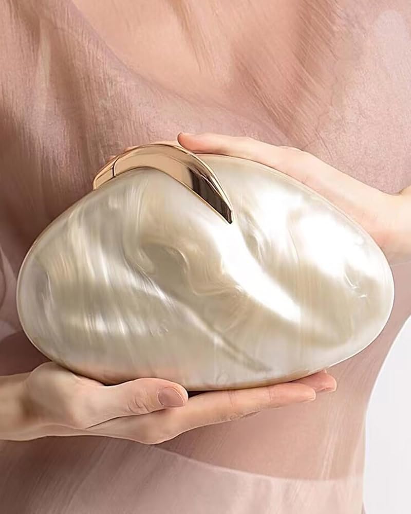 【Material】 Our evening clutch is made of high-end acrylic, with a layer of metal paint electroplated on the surface, which is not easy to fade, durable, smooth, exquisite, and fashionable. Adopting a magnetic buckle closure method for easy opening.