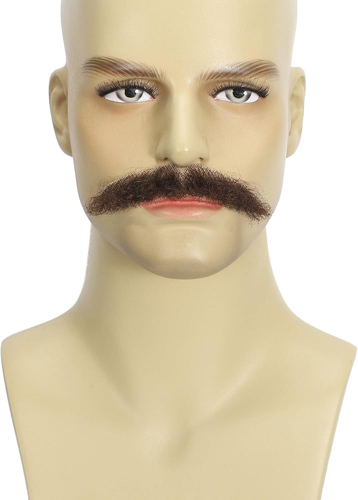 Realistic Human Hair Mustache & Beard for Men, Thick Fake Beard with Invisible Lace, Fake Mustache Ideal for Cosplay, Halloween Costumes, and Themed Parties (Brown)