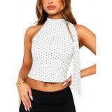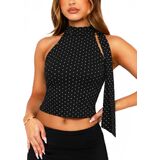 Black Off The Shoulder Halter High Mock Neck Going Out Tops for Women: Cute rave top bow tie sleeveless crop tank top with scarf; party night out club tops sexy concert outfit y2k crop tops fitted elegant tops summer cami shirts