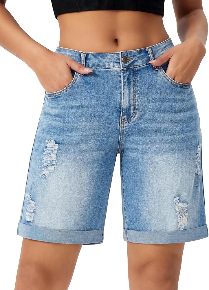 Unique Style: The loose fit rolled hem design adds a touch of casual flair to these denim shorts, making you more attractive and stand out from the crowd that works well with tops, roswear blouses, or tanks