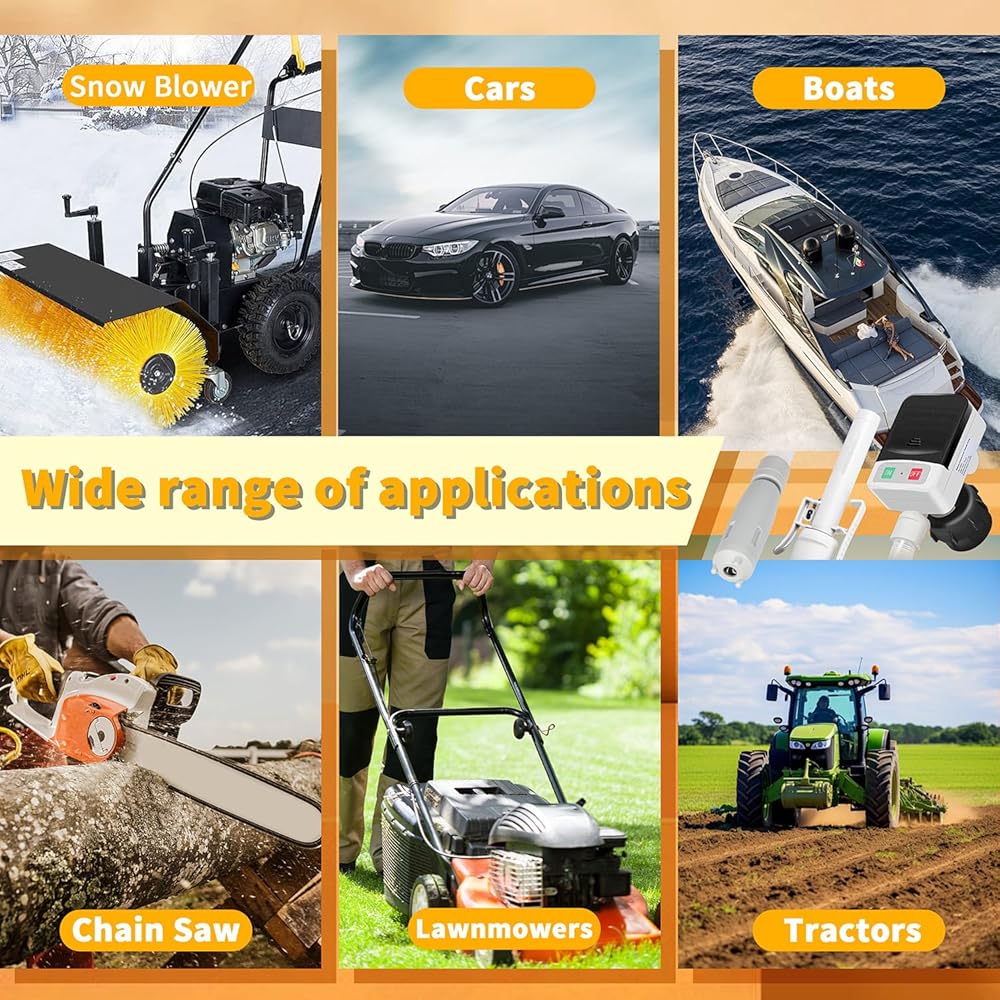 【Ultra-Portable Fuel Transfer】**Compact 1.8lb design with ergonomic grip – transfer gasoline, diesel, kerosene or water to cars, tractors, boats, generators in 90 seconds. No more manual siphoning!