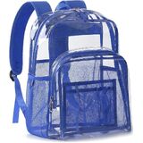 Spacious and Organized - Clear backpacks for school has a large capacity of 11.7*8.26*17 inches, which can hold every thing you need for college and work. 1 mesh pocket inside main compartment for laptops, books, 1 front zipper pocket to hold notebooks, phone and pens, 2 side mesh pouches designed for water bottles or umbrellas, this large clear backpack for women offers ample space to hold. Multi-pocket design allows you to organize your items in a more organized manner and easily accessible