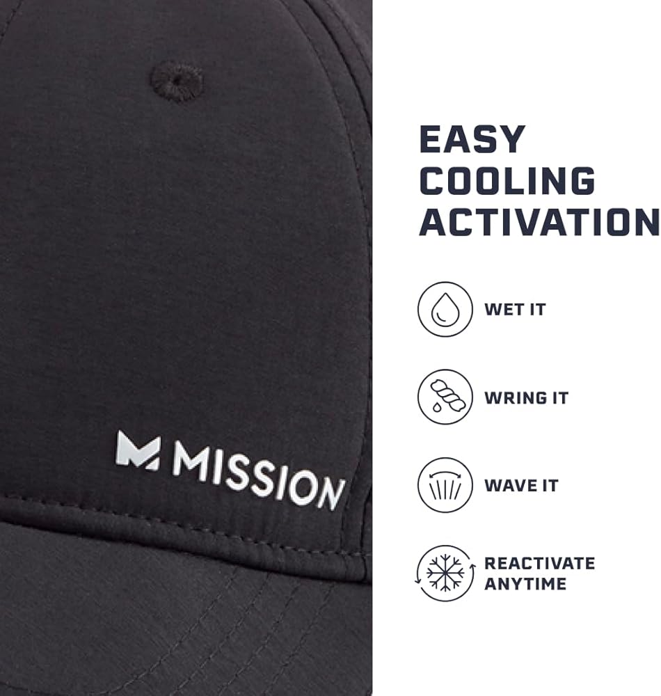 WATER & SWEAT ACTIVATED TECHNOLOGY: This Cooling Hat incorporates advanced Wet-to-Cool Technology, which absorbs water or sweat to cool the hat by up to 30 degrees below average body temperature in under 1 minute. This innovative feature allows the hat to stay cool for up to 2 hours or longer with reactivation. By keeping cool, you can stay focused and dedicated to your activities without distraction. To activate your hat, simply follow these 3 steps: wet, wring, and wave.