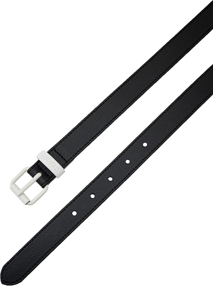 A plain leather-effect belt with texture and a contrasting metal buckle.