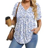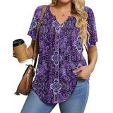 Design: Plus size tops for women feature classic small v-neck shirts, three decorative buttons, slightly pleated chest, irregular oval hem, and flared fit design, showing the elegance and beauty of women.