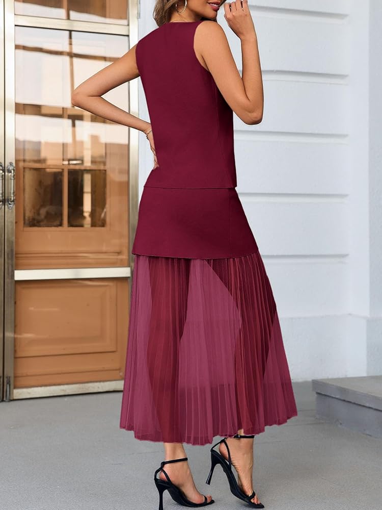 Feature: 2 piece skirt set for 2025 summer, button blazer vest, button vest sets, knit 2 piece skirt outfit, casual business 2 piece outfits