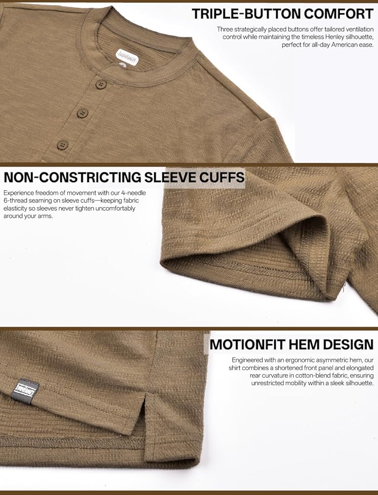 Versatile Wearing Scenarios: This slub-textured henley shirt adapts to wilderness camping, urban streetwear, and backyard BBQs. The 3-button placket allows quick ventilation during hikes while maintaining office-casual appeal when layered under jackets.