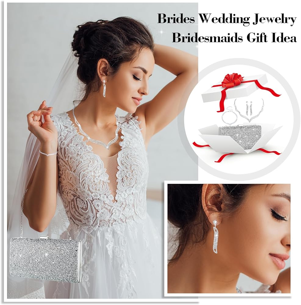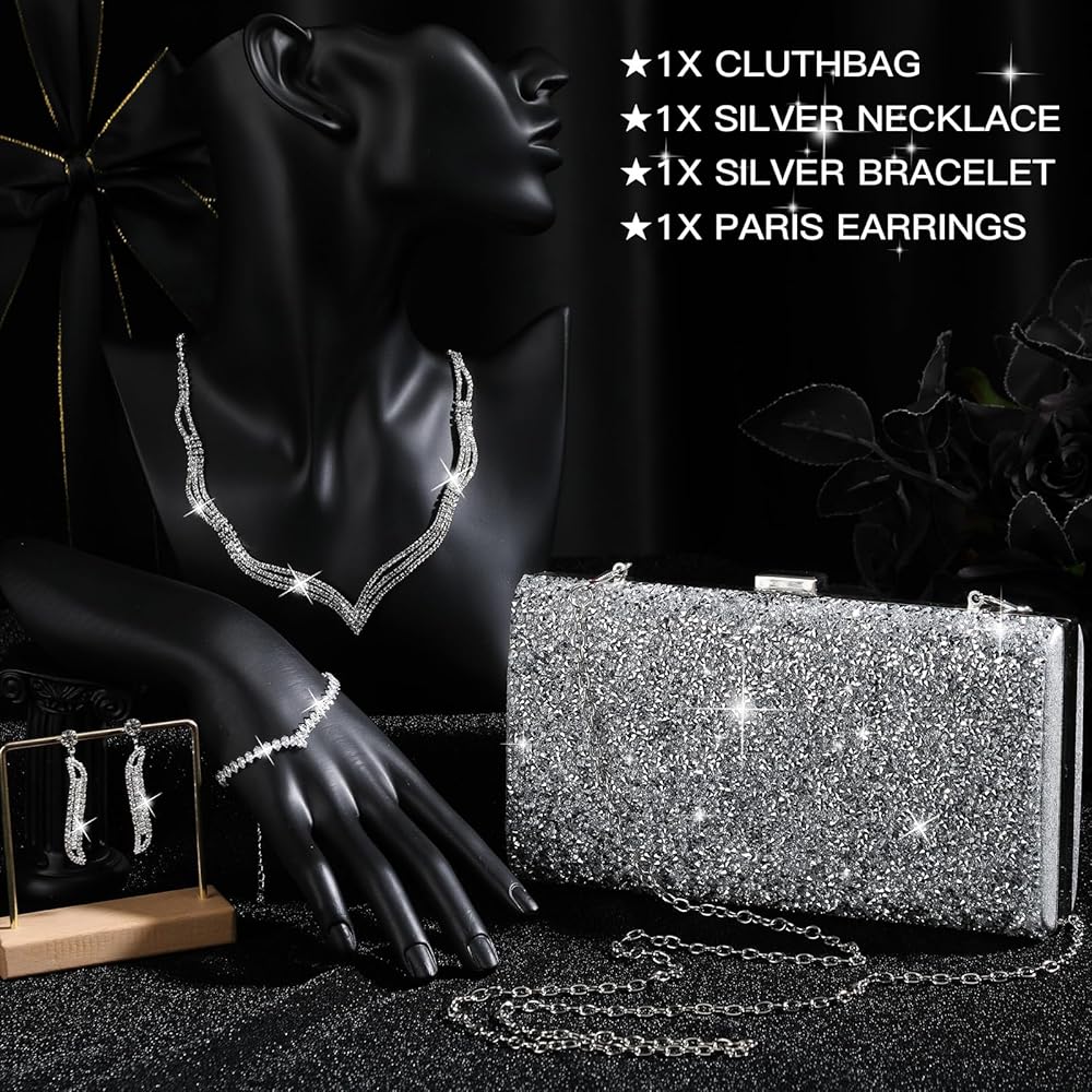 Nice Gifts: rhinestone purse and silver jewelry set are nice gifts for your mom, sister, wife, girlfriend, daughter and partners, they will be satisfied, and strengthen the bond between you
