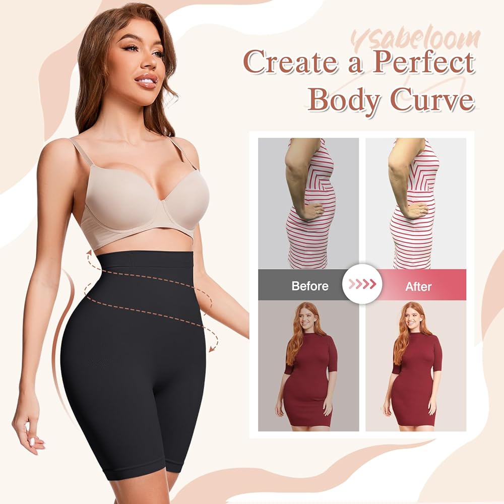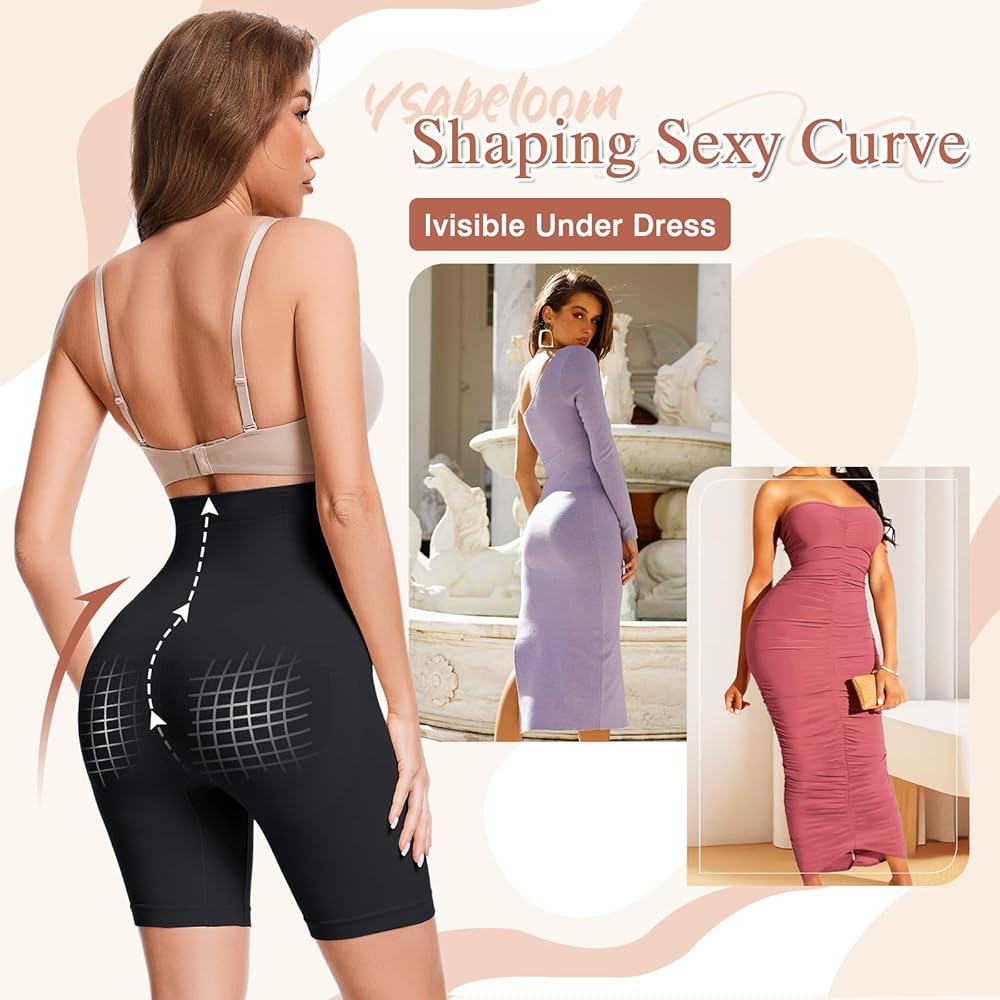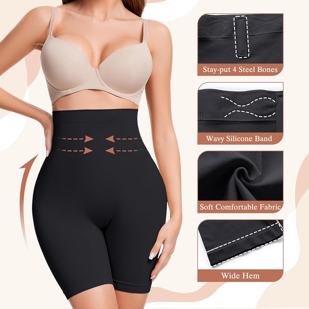 Tummy Control Shapewear Shorts:The 360 degree high-waisted design of this shapewear shorts for women tummy control provides moderate compression on the abdomen,waist and back,effectively tucking your tummy,tightening the waist and smoothing your back.Anyone wearing our high waist shaper shorts will get an hourglass figure and show off charming female silhouettes.