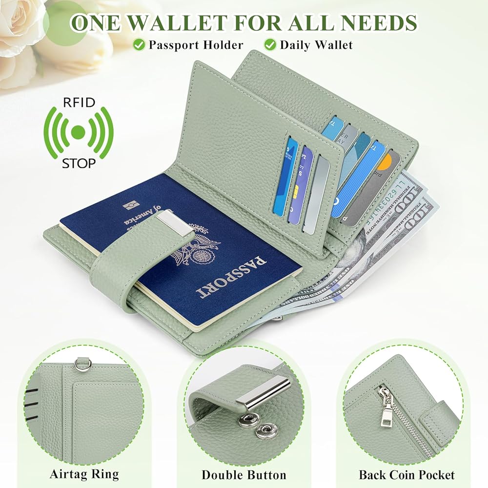 FUNCTIONAL PASSPORT HOLDER: Not only a passport holder but also an everyday wallet. Passport wallet can securely store your passport, credit cards,ID card, tickets, cash, and coins, keeping all your essentials organized. Whether you're a frequent flyer or a casual traveler, this AirTag passport wallet has you covered.