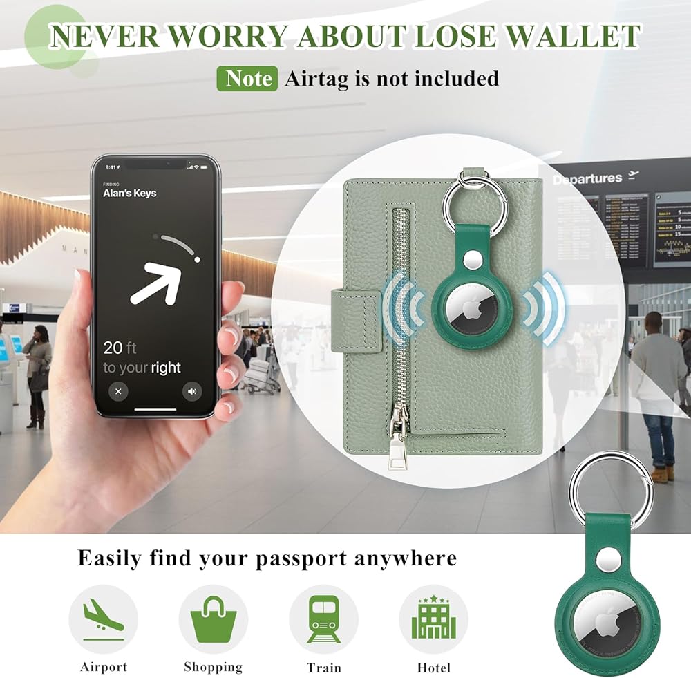 AIRTAG PASSPORT HOLDER: Travel Passport Holder is equipped with a dedicated holder for AirTag, simply insert the Airtag into slot and allowing you to easily track your wallet and keep it safe during your travels. (Please note that AirTag is not included in the product)