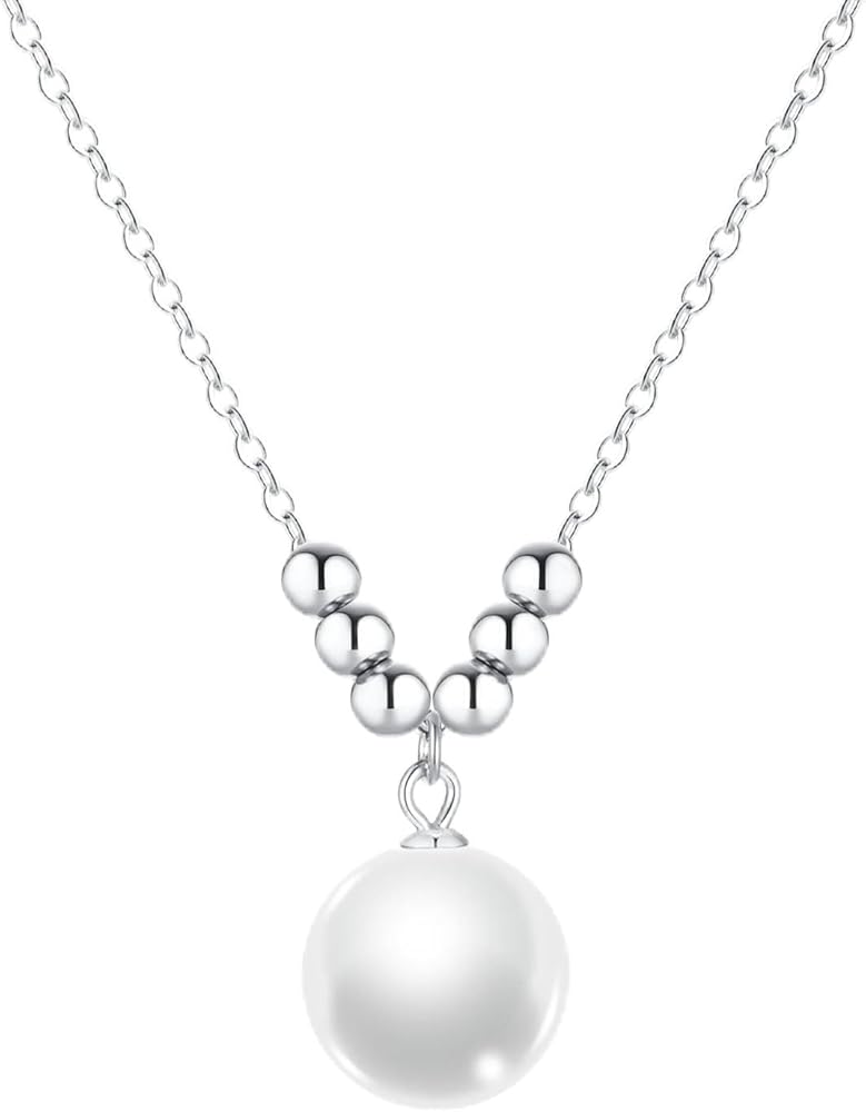 • 【PREMIUM QUALITY MATERIALS】The metal components of this pearl necklace are crafted from 925 sterling silver, hypoallergenic, and nickel-free. The silver necklace is adjustable, with a length of 15.7" + 2". We select high-luster 10mm large shell pearls and add dazzling cubic zirconia ,silver bead to pair perfectly with the silver pearl necklace, enhancing its overall brilliance.