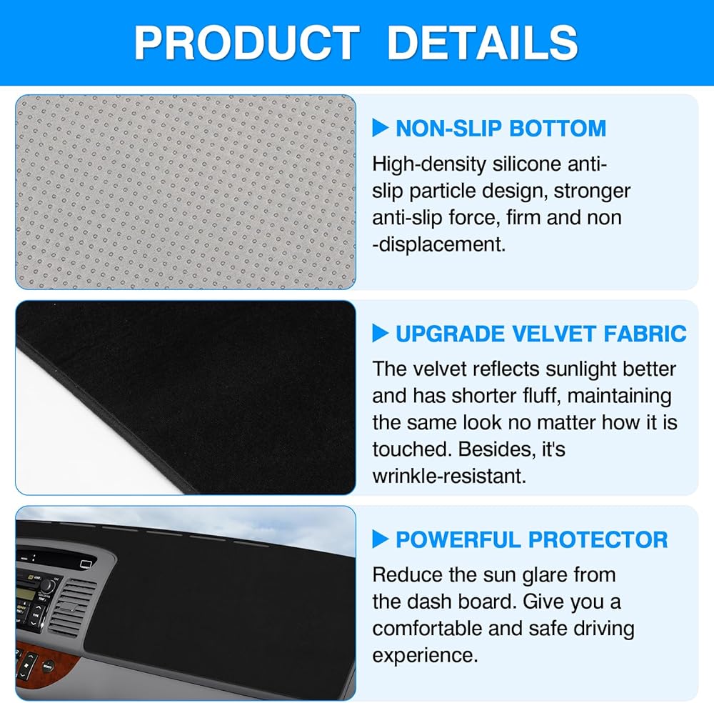 Easy Installation: Just place the dash cover straight on top of the dashboard and then fix the dash cover with seamless adhesive double-sided stickers. No worry about slipping