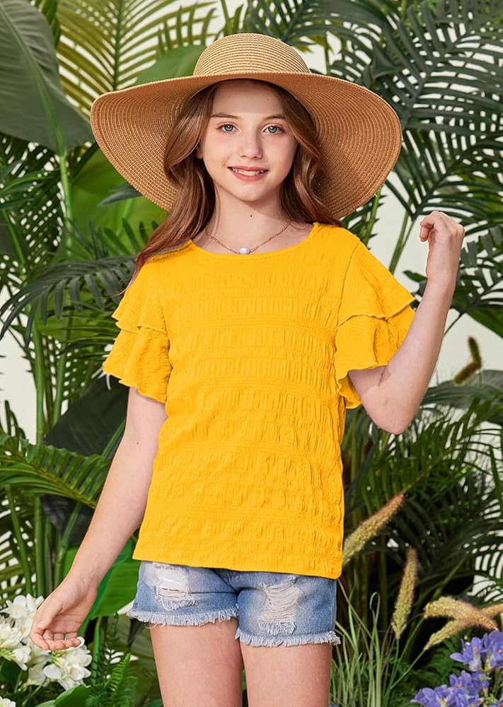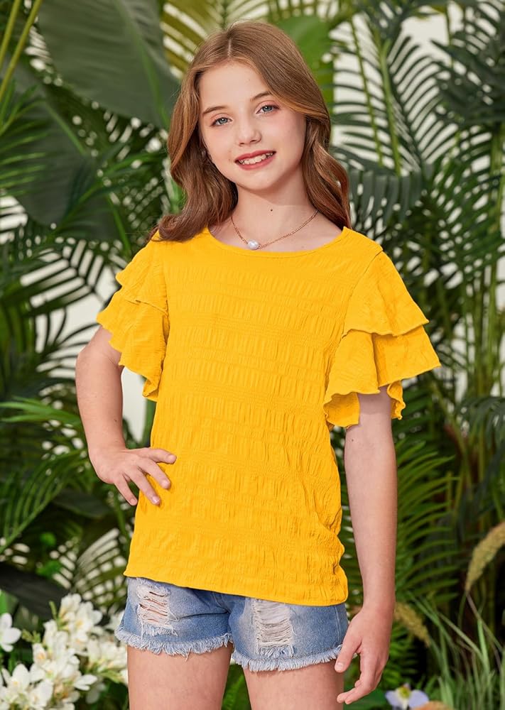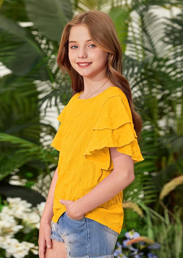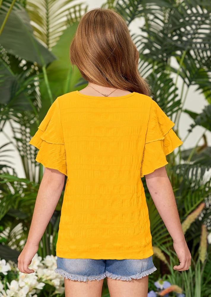 Elegant Design - This girls' top features double ruffle flare sleeves for a chic, fashionable look that adds a touch of elegance to any outfit.